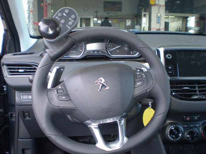 Acceleratore sotto al volante e leva freno